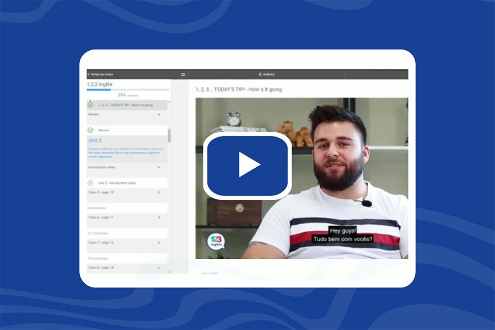 O curso da "1,2,3 Inglês" é para maiores de 13 anos, para quem nunca estudou inglês, ou para quem já tem uma boa noção do idioma, mas ainda precisa de ajuda para destravar a fala.